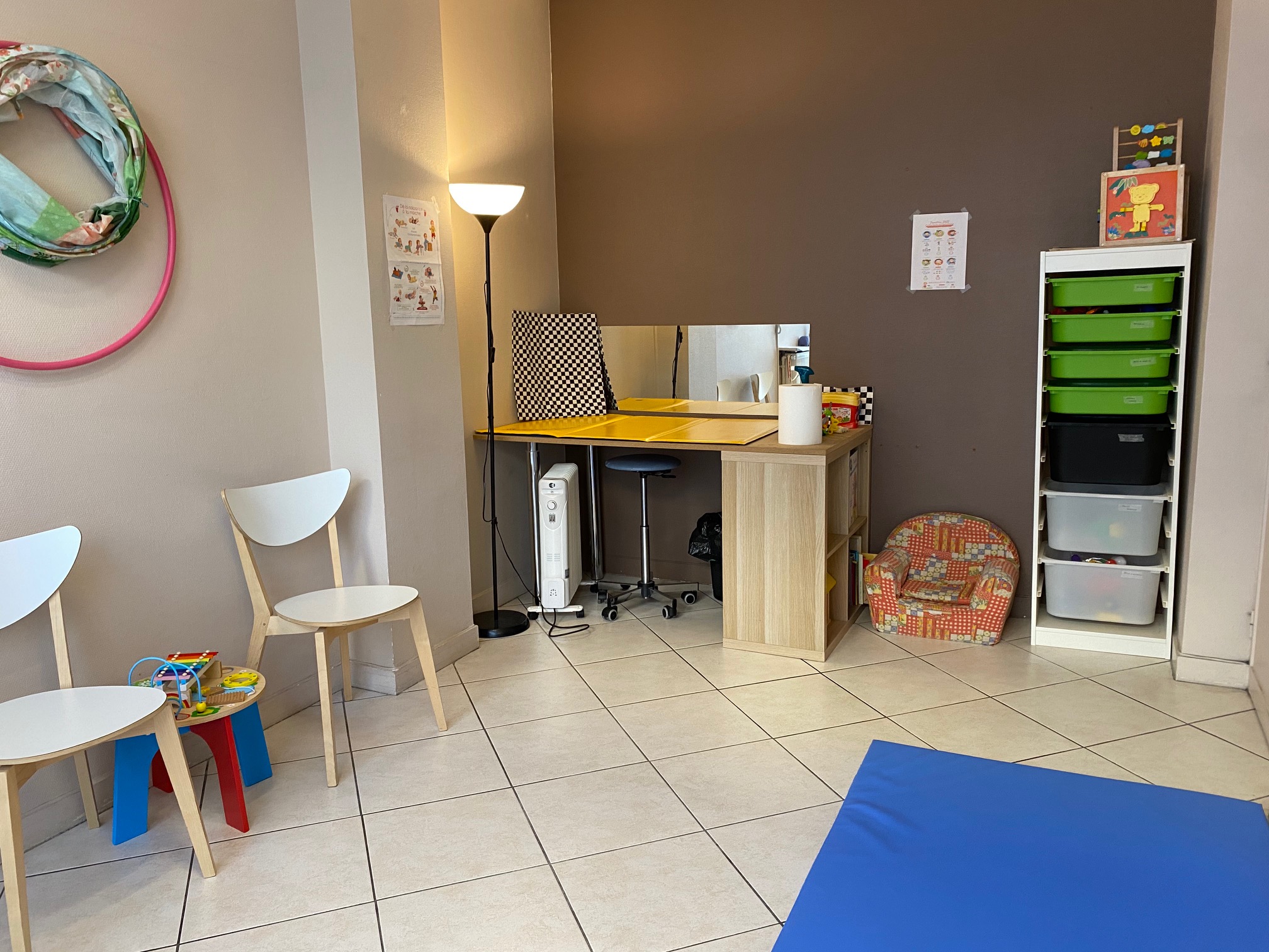 L’équipe du cabinet se compose de 11 professionnels de santé accompagnant les enfants et leurs familles. Nous vous accueillerons dans un espace de 140m2 composé de 7 salles et un espace d’accueil. L’espace est adapté aux petits et aux grands, pensé de manière inclusive.